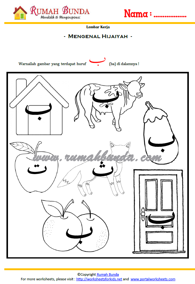 for "Latihan Menulis Hijaiyah Ba - Gambar Mewarnai Mewarnai Huruf Hijaiyah Untuk Anak Tk"